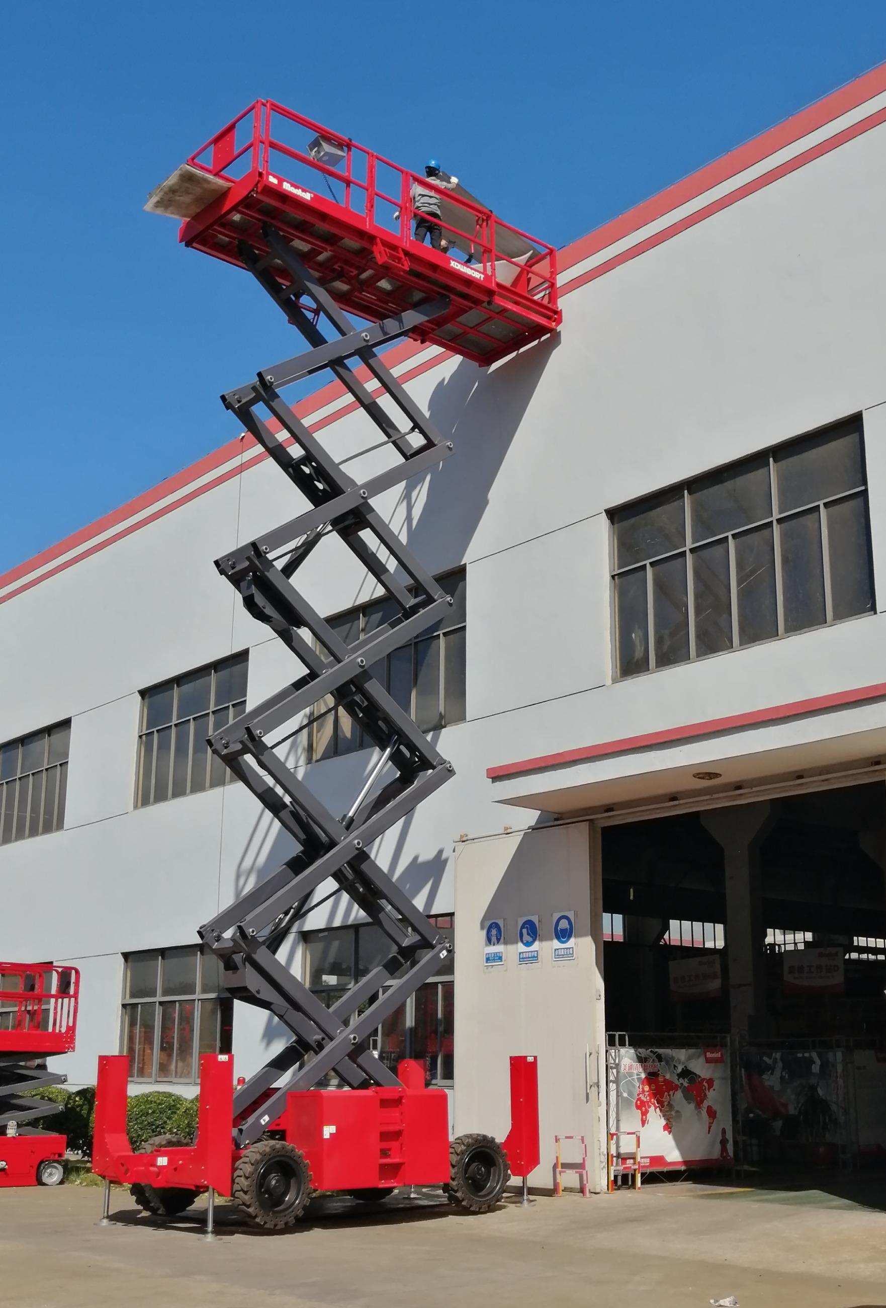 标准特征四轮驱动实芯粗糙地面轮胎比例控制倾斜保护系统蜂鸣器倾斜传感及声音警报免维护电池安全检修支撑架双闪光灯双延伸平台折叠式平台栏下降警报安全检修支撑杆随车诊断系统喇叭叉车孔及吊装孔紧急停止按钮连接平台的AD电缆