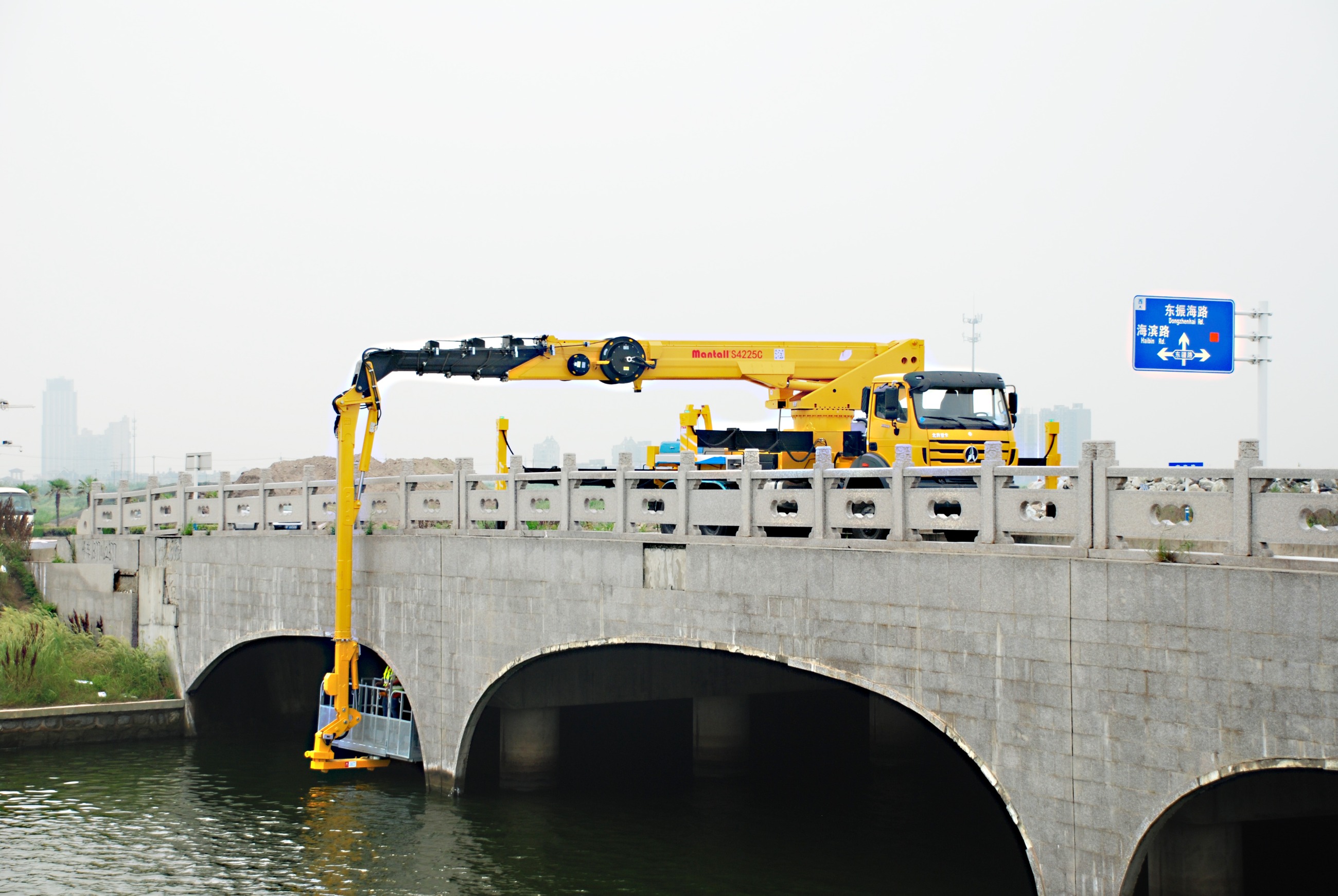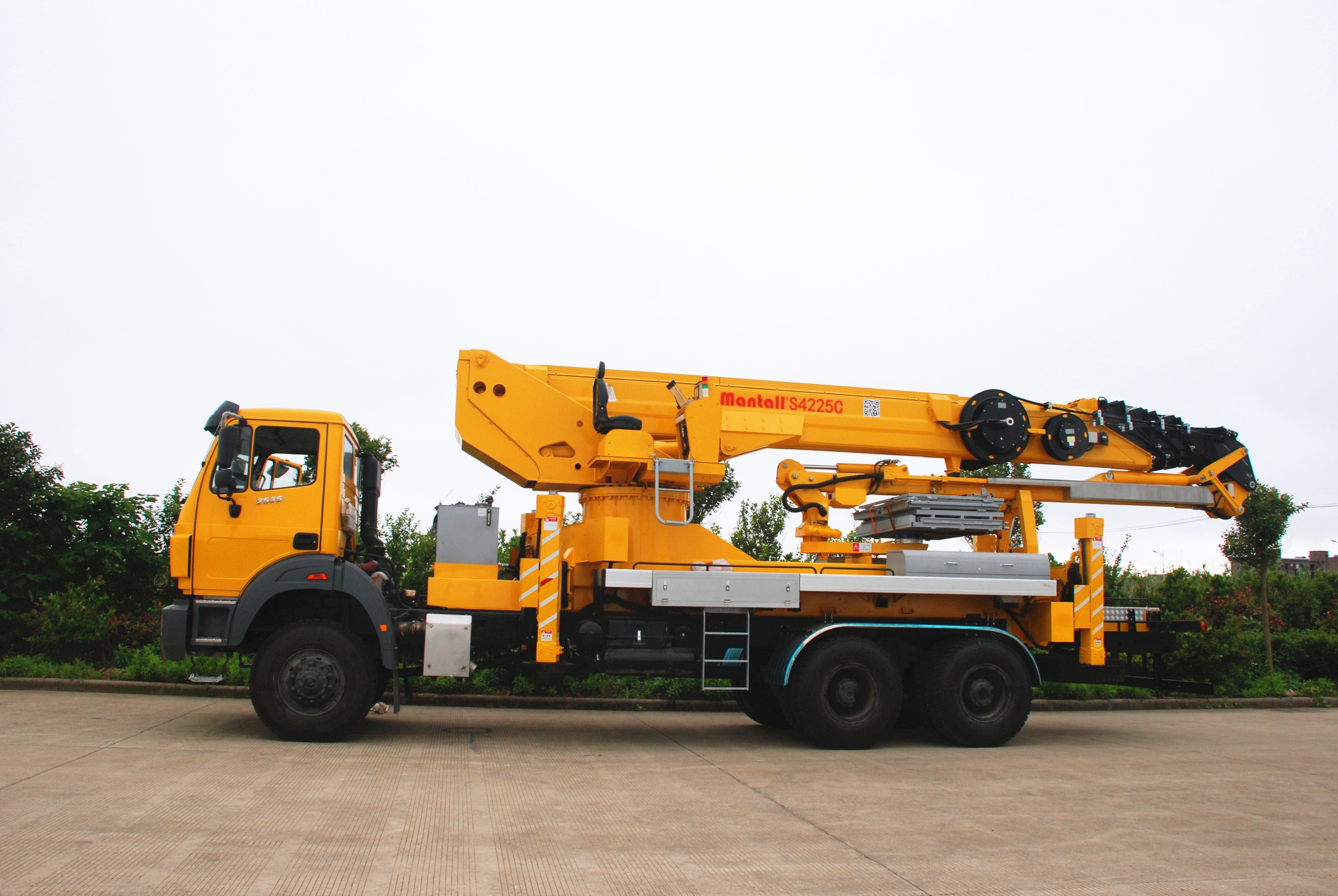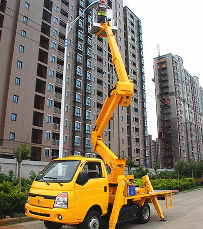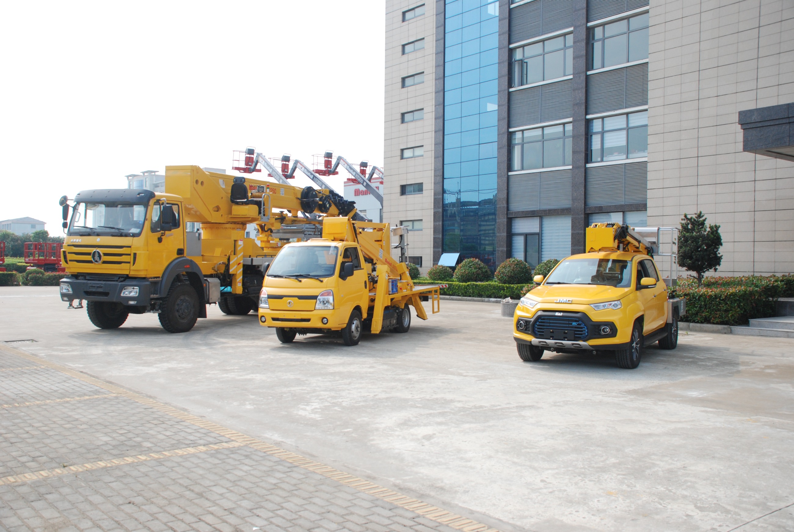 美通S系列车载型高空作业车的转台可360度旋转,举升臂最大可延伸14.5米, 平台可旋转180度,让工作位置定位精准,轻松跨越障碍物。